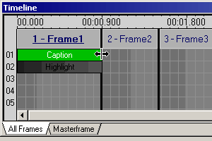 | An effect placed in a single frame can be resized to extend into multiple frames, eliminating the need to re-insert the same effect numerous times. You can visually change the duration of an effect by highlighting the effect and dragging it to the desired size from within the timeline panel. |