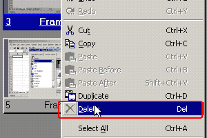 | Recordings appear as a series of manageable individual frames viewed as thumbnail images in your workspace. The Thumbnail view displays every frame in your project so that you can re-order frames, delete frames, record and insert new frames, or double-click a frame to edit it. |